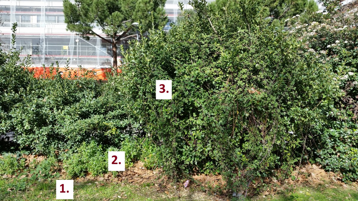 1. Césped 2. Vegetación ruderal 3. Vegetación arbustiva.