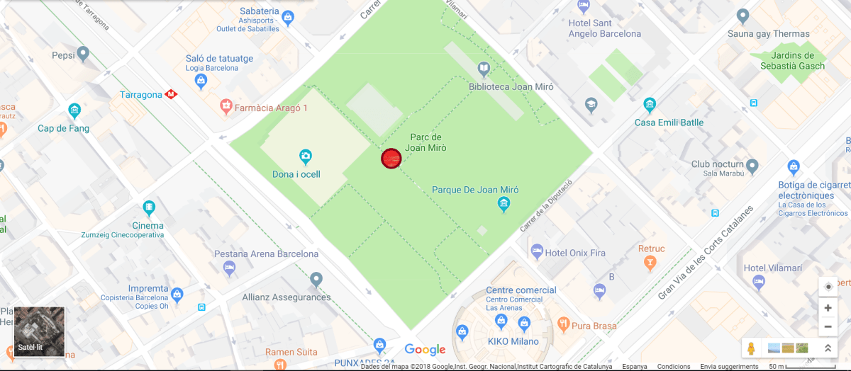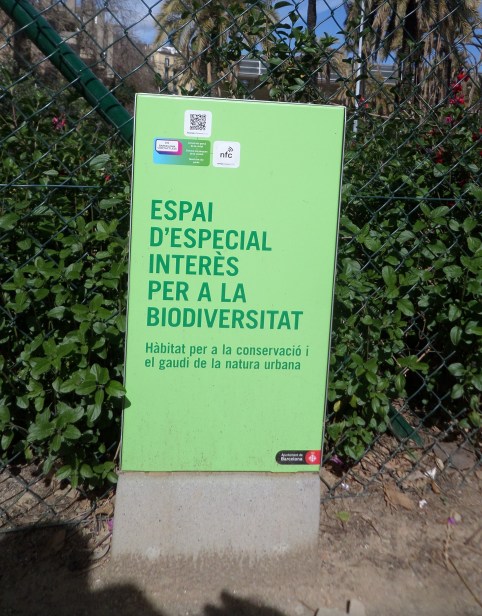 El día 19 de marzo por la mañana pasé por el Parc de Joan Miró, ubicado cerca del Centro Comercial Las Arenas, donde podemos encontrar el Espacio de Interés para la Biodiversidad. En ese momento el espacio estaba cerrado, así que las fotografías fueron tomadas desde las inmediaciones.