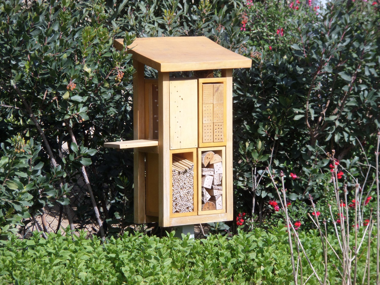 Los hoteles de insectos favorecen la fauna polinizadora, especialmente avispas y abejas solitarias que los emplean para construir las celdas donde se desarrollará su descendencia.