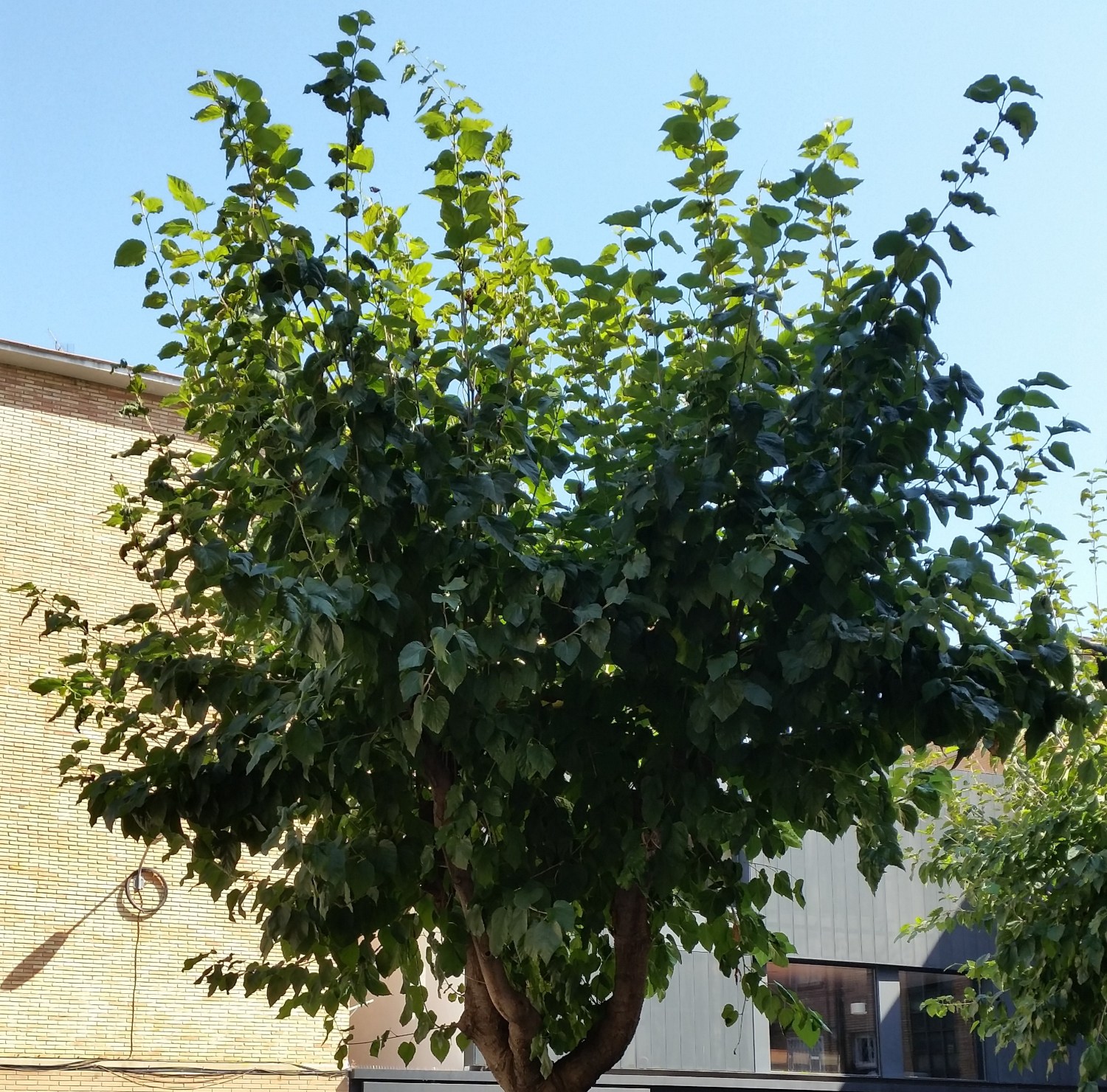 La semana pasada estuve por esa misma zona y pude apreciar el cambio. Como ya indiqué en el anterior artículo no tengo muchos conocimientos sobre poda, pero tanto en estética como en porte pienso que esta morera ha mejorado bastante.