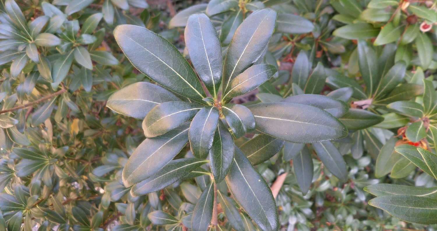 Me ha costado un poco identificar esta especie, ya que presenta caracteres intermedios entre Pittosporum tobira y Pittosporum truncatum especialmente en la hoja, así que me he aventurado en la identificación. También me ha parecido interesante porque muestra fructificación.