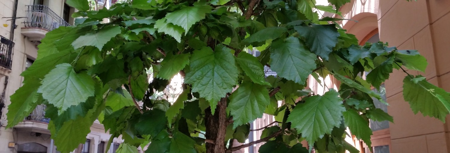 Características: Árbol caducifolio de hasta 25m de altura (aunque puede tener un porte mediano, de 10m aprox.) con corteza grisácea más o menos lisa. Hojas alternas, simples, nervadas, pecioladas, de puntas romas y ligeramente lobuladas que se vuelven amarillas en otoño. Flores en amentos amarillos a finales de invierno. El fruto, la avellana, es comestible.