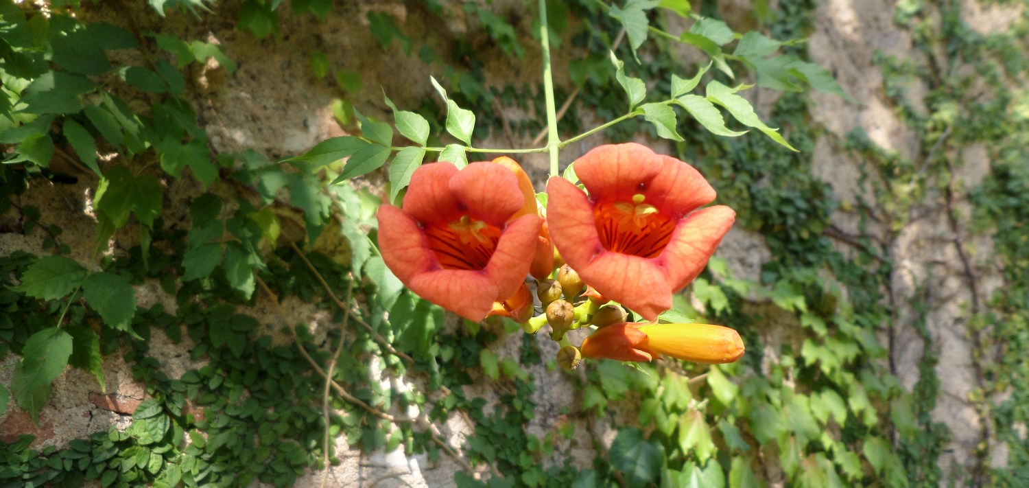 Reconozco que me cuesta diferenciar entre las distintas especies de Campsis que se plantan en Barcelona que, por lo general, son tres: Campsis radicans, Campsis grandiflora y Campsis x tagliabuana (híbrido entre las dos especies anteriores cuya denominación no se si está aceptada). Para ser conservador prefiero decantarme por la primera, es una especie bastante común pero hay que destacar su preciosa floración.