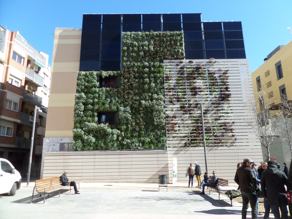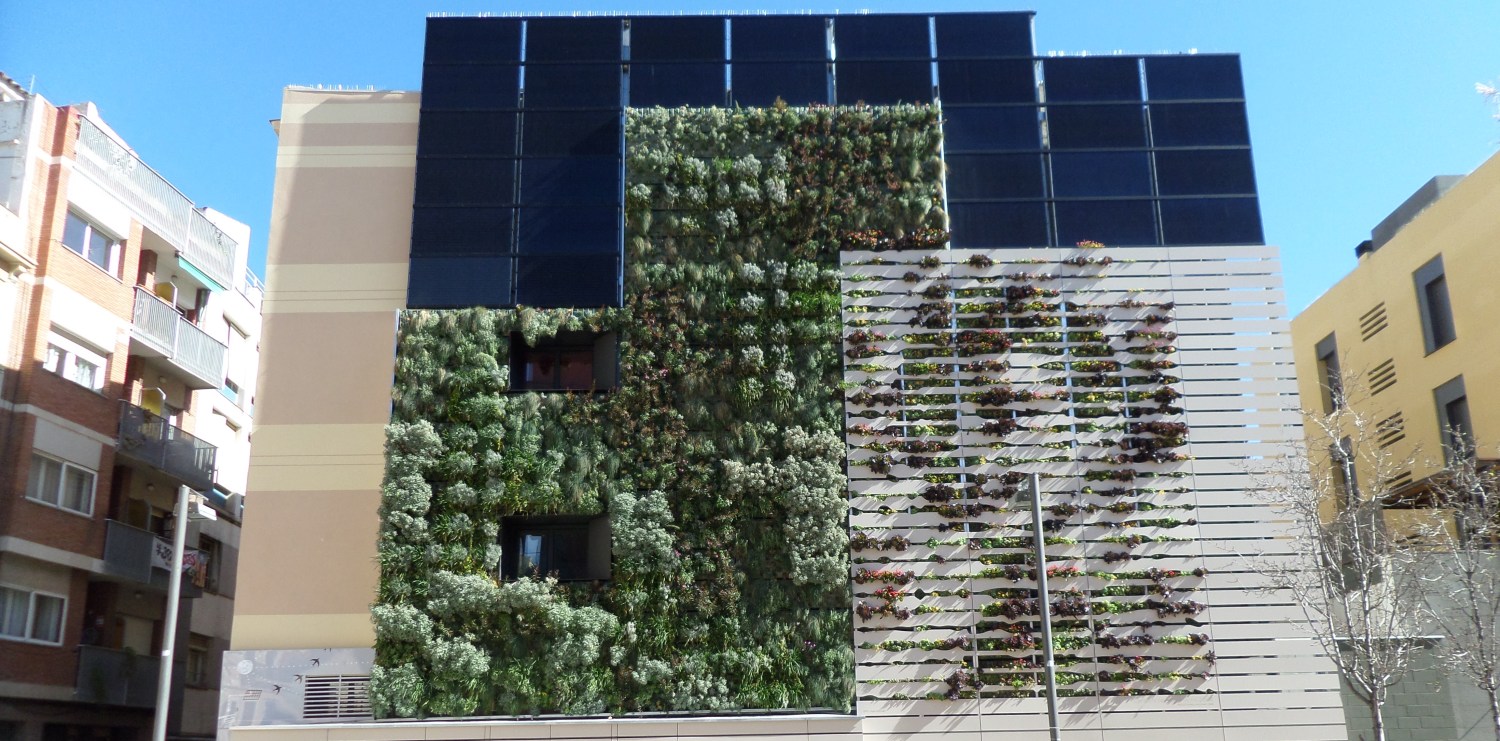 Este jardín vertical se enmarca dentro del Plan del Verde y de la Biodiversidad 2020, que pretende fomentar y establecer más espacios como este ya que aportan una importante riqueza de especies, mejoran la calidad del aire y la calidad cromática y visual, presentan variabilidad estacional y temporal, son una seña de identidad del emplazamiento (en este caso, del barrio) y tienen interés artístico. Siendo esta una mejora respecto al parterre de mahonias que había anteriormente. Es una actuación interesante teniendo en cuenta que vivimos en una ciudad con un crecimiento horizontal limitado y que solamente puede crecer hacia arriba.