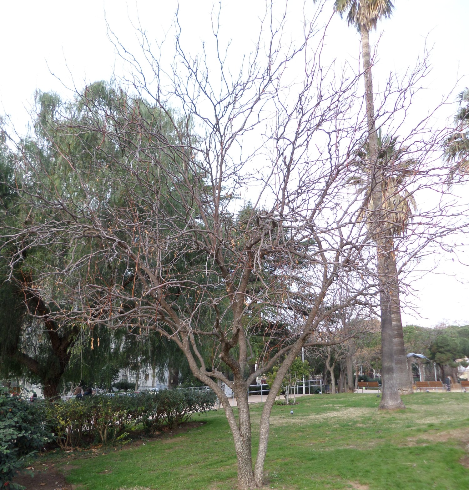 Las fotografías se tomaron a principios de Enero, por ese motivo este ejemplar no tiene hojas. No acostumbro a tratar una especie si el ejemplar fotografiado no muestra algunas de las características que lo hacen reconocible, pero en este caso encontré interesante mostrar el aspecto que presenta este árbol caducifolio desnudo de follaje.