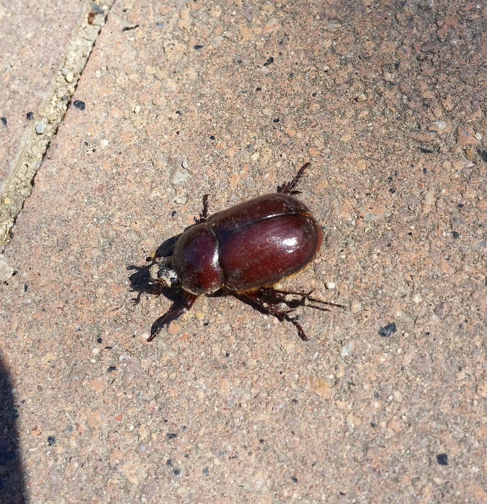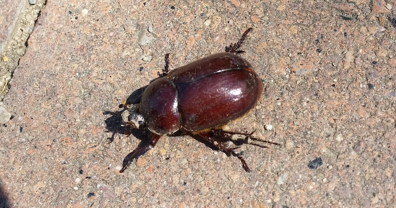 Hace un par de semanas, entre Montjuïc y Poble Sec, encontré esta hembra de escarabajo rinoceronte (Oryctes nasicornis):