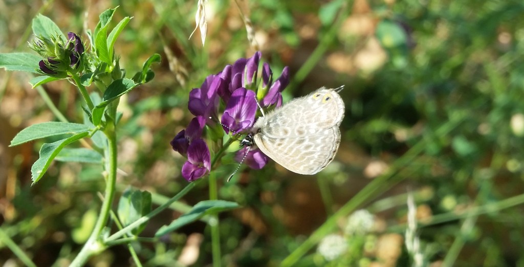 Aprovechando la oleada de mariposas Vanessa atalanta que se pueden encontrar en la ciudad ahora que emigran del norte hacia zonas más cálidas, hablaremos de otra mariposa bastante abundante estos días y que, por su tamaño, puede pasar desapercibida.