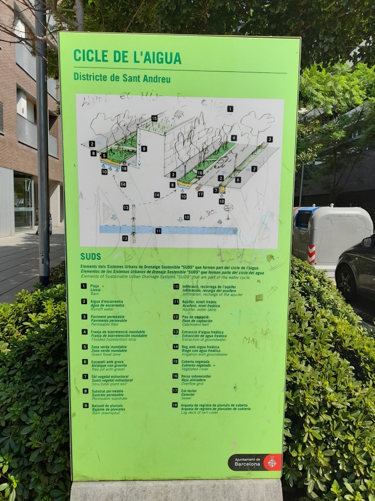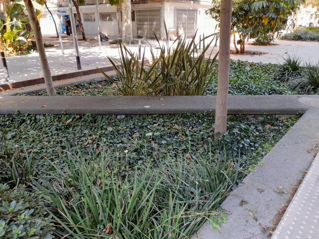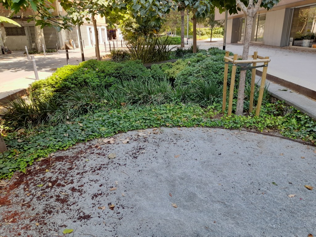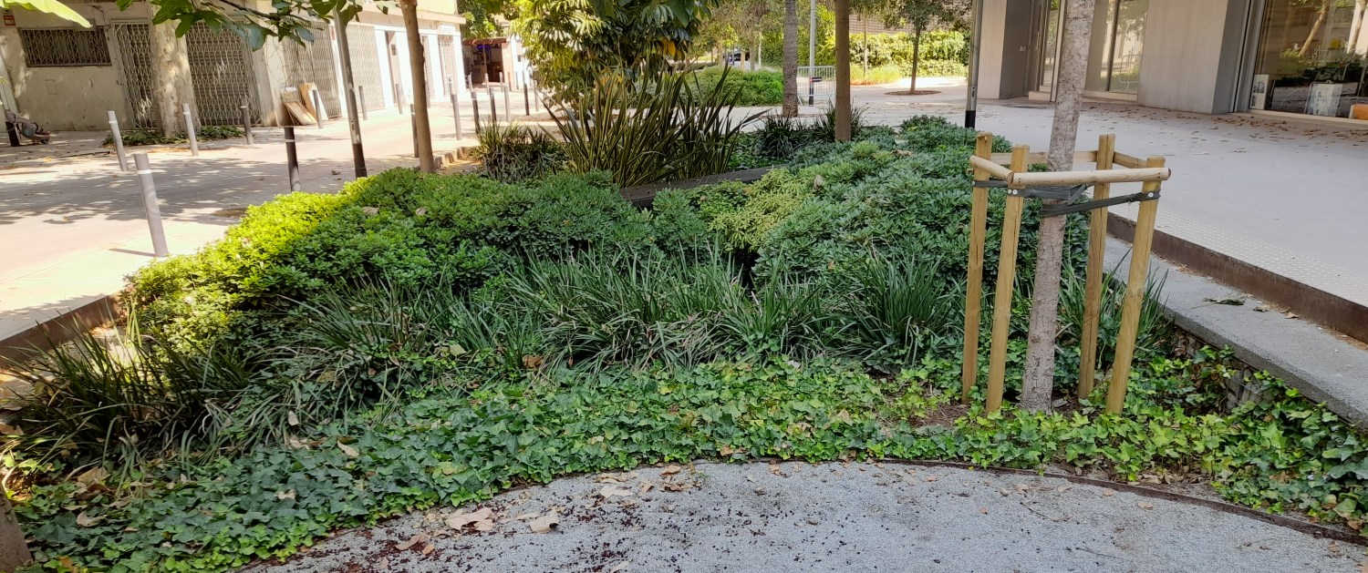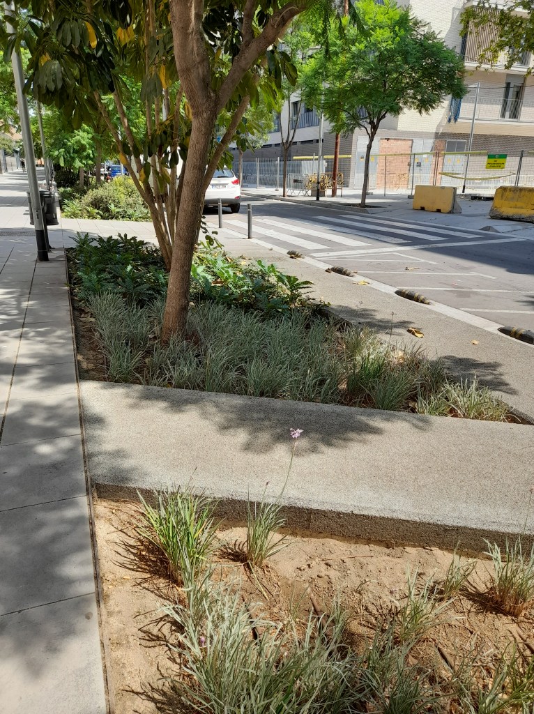 En las calles Biosca y Bellmunt, en el barrio del Bon Pastor, se implementaron SUDS (Sistemas Urbanos de Drenaje Sostenible).
