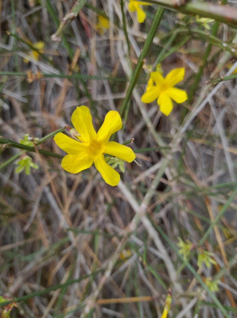 - Inglés: Winter-flowered jasmine, winter jasmine.