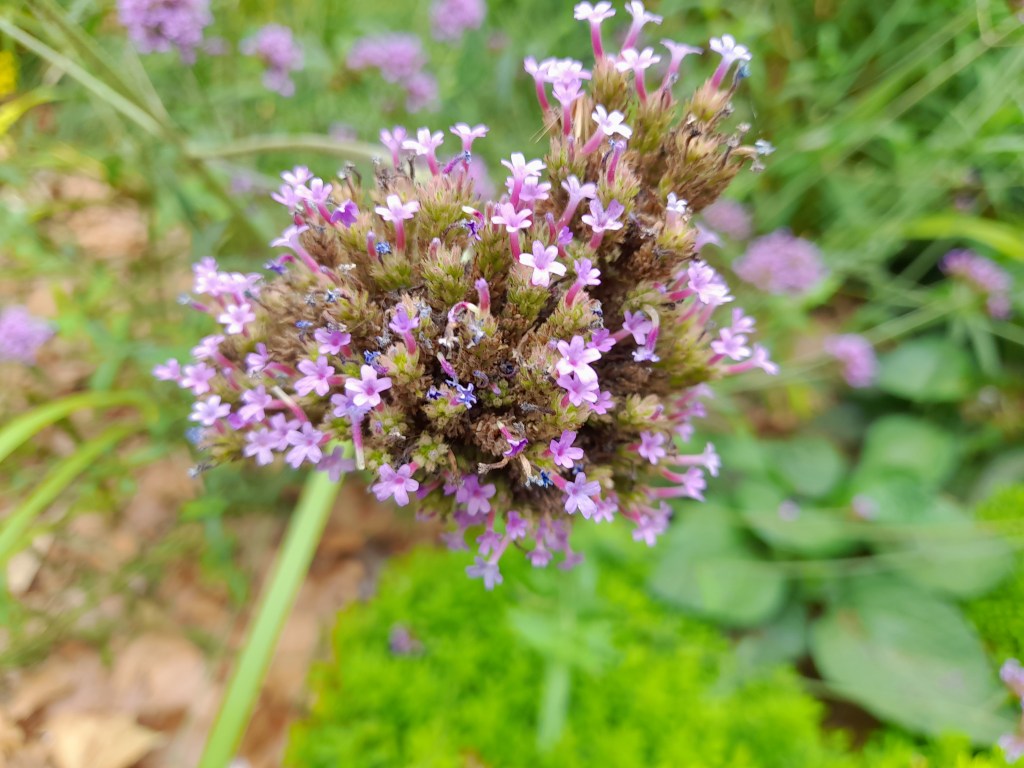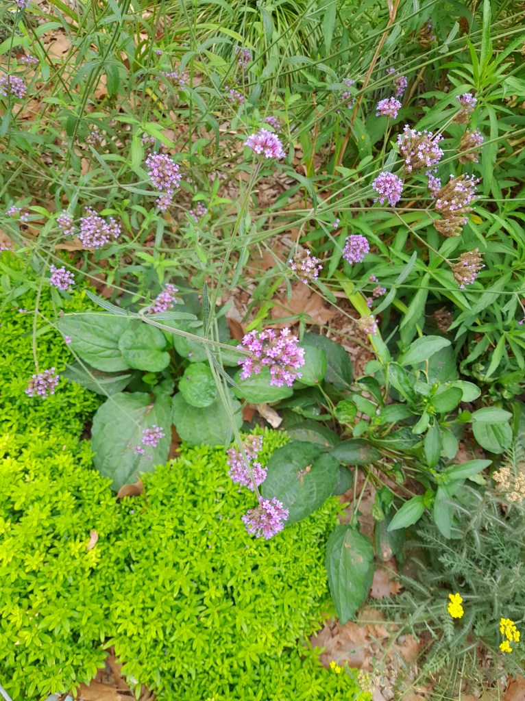 - Inglés: Tall verbena, Argentinian vervain, Buenos Aires vervain, purple top, South American vervain, Brazilian verbena, Brazilian vervain, clustertop verbena