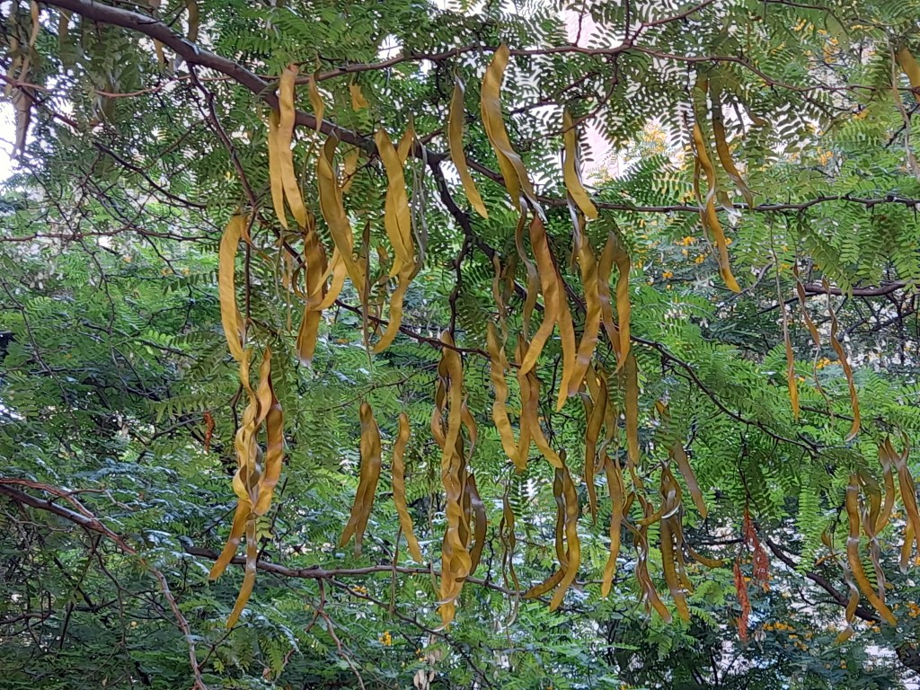 - Inglés: Common honey locust, honeylocust, honey shucks locust, sweet bean tree, sweet locust, thorny locust.