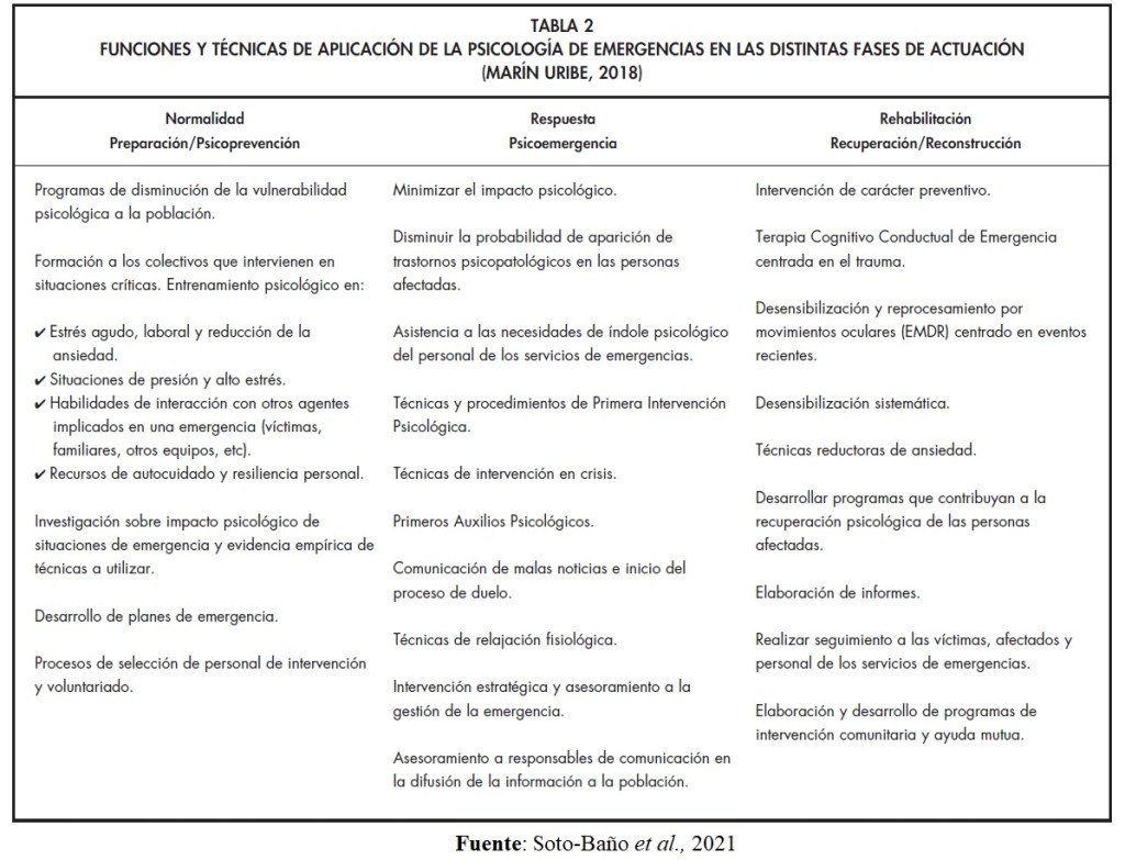 - Soto-Baño, M. A., & Clemente-Suárez, V. J. (2021). Psicología de emergencias en España: Delimitación conceptual, ámbitos de actuación y propuesta de un sistema asistencial. Papeles del psicólogo, 42(1), 56-66. https://doi.org/10.23923/pap.psicol2020.2939